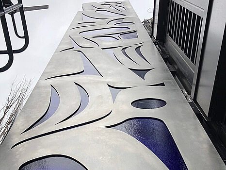 This newly installed public art sculpture, "Petrel Guards the Water" and "Raven Steals the Water", was created in collaboration with artist David Franklin in Seattle. This piece was inspired by the Tlingit story of Raven and Petrel.