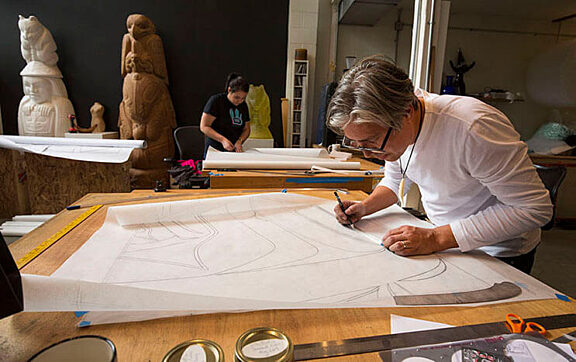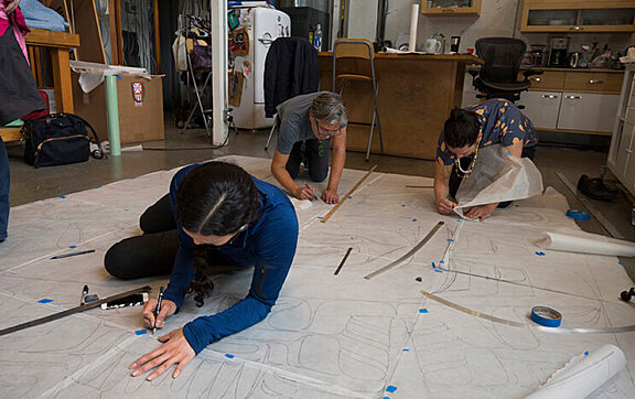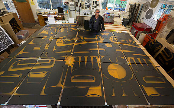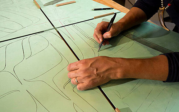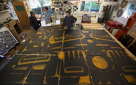 Our friend and photographer Russell Johnson documented the first stages of the production of the screen for the Sealaska Heritage Insititute's Walter Soboleff Center in Juneau, AK. All photographs are copyright Russell Johnson. Please ask permission for use.