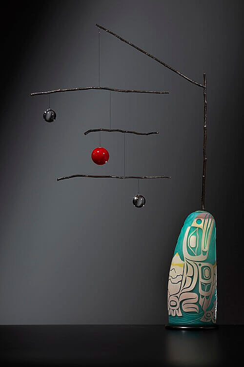 The work included in the “Annual Celebration of Native American Art” at the Blue Rain Gallery is a variety of new art that builds on formats that I’ve been experimenting with sculpturally and esthetically. The vessel forms pay homage to my glass blowing roots and are adorned with flowing form line designs, while the colors are bright, meditative and reference a sort of modernist sensibility.