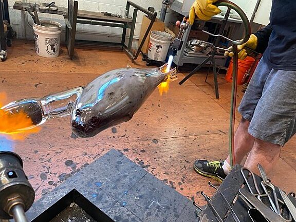 Shortly after gradually reopening the hot shop at the Studio in July I was able to collaborate with the artist Raven Skyriver on a new collection of blown glass sculptures. This is our second collaboration together where we were able to meld our distinct styles into glass.