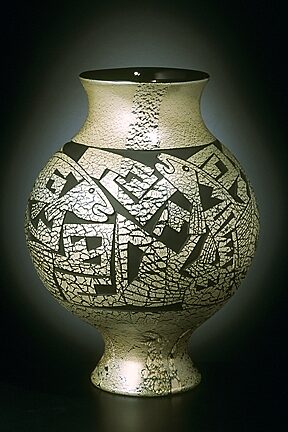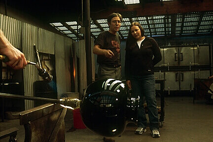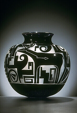 For nearly a decade, Preston has collaborated with Tammy Garcia, a world- renowned artist who works in pottery, jewelry, glass, and bronze. She begins the creative process of interpreting traditional pottery into contemporary glass by designing each vessel on paper. Singletary, a pioneer in glass sculpture, brings those ideas to life by blowing each unique, free-form vessel to Tammy's exact visualized standards. Once the vessels are blown, Garcia uses her artistry and talent to add designs to each piece.
