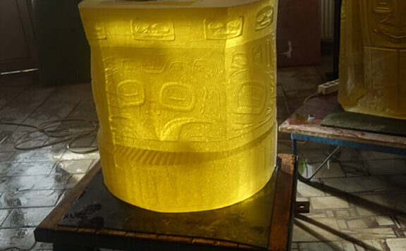 In the summer, Preston then contacted Charles Parriott, a longtime friend and colleague with professional ties to the glass community in the Czech Republic, to take over as project manager. Almost immediately, we shipped the original wooden totem to the Czech Republic, where Art Fabrication Services EU set to work taking yet another mold from the totem.