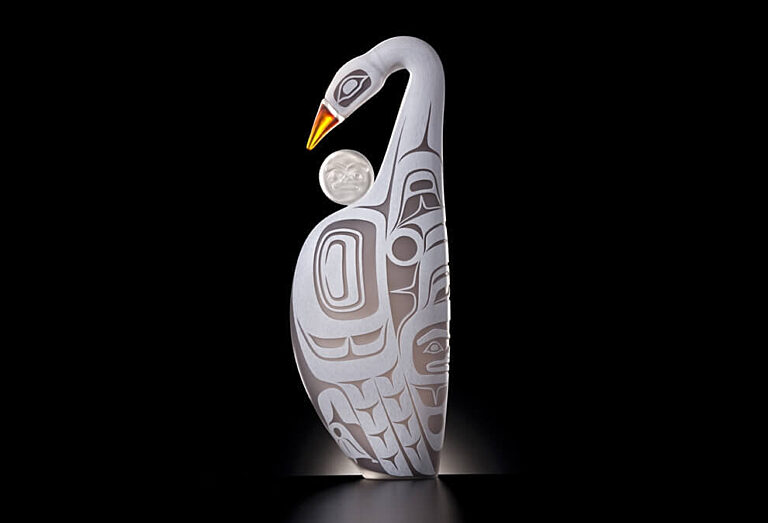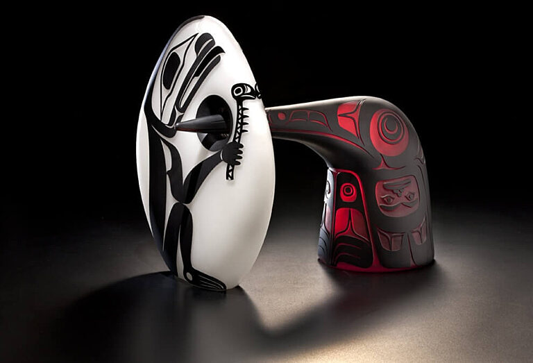 The expressive voice of Preston Singletary is clearer and more resonant than ever. He is widely regarded as a leader in both the worlds of Northwest Coast Native art and studio glass, and known for bringing a new material to an ancient tradition. In Confluence, the artist's new exhibition at Traver Gallery [Spring 2012], Singletary hits a new note. While still responding to the powerful voices of the Tlingit tradition, he is also embracing the modernist spirit that informed his aesthetic development. As the title suggest, this new work marries two distinct histories into one harmonious present. The artist's use of increasingly abstracted sculptural forms and a unique form line forcefully engage both the modern and the indigenous. It is exciting to see an artist who has reached his stride continue to demand more from himself, from his medium, and from his audience.