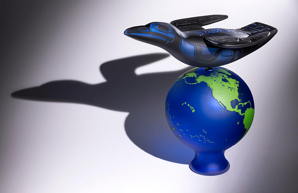 End of year greetings from Preston Singletary Glass Studio. It was a year of new directions with my collaborations with Garth Stein who helped me string together concepts for new stories of what Raven is up to in our current world. Garth Stein is an internationally acclaimed novelist and ranked on the NY Times best seller list. He has Tlingit ancestry like me. We met around 1999 after I read his novel, Raven Stole The Moon, after which he returned to Seattle to live.