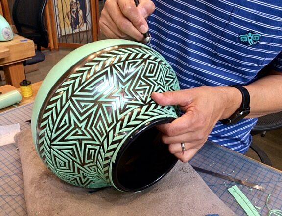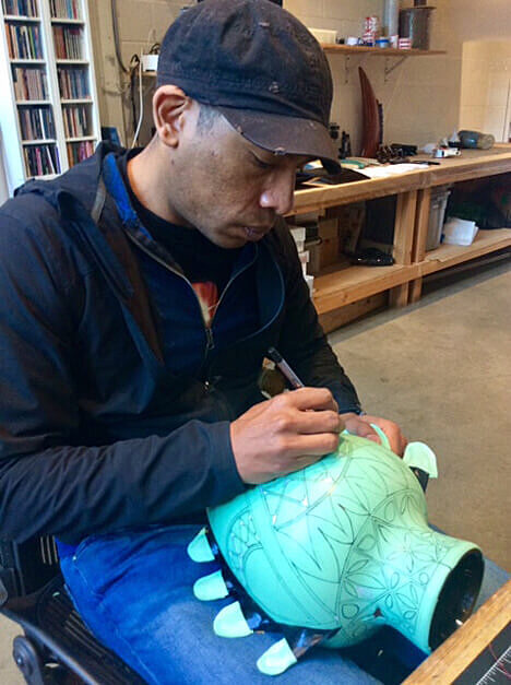 Recently the Preston Singletary Studio was pleased to host artist Harlan Reano, a leading potter from New Mexico, to work on their new collection of collaborative art in blown glass.