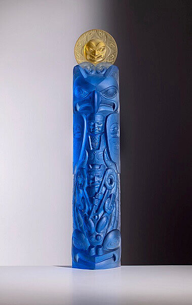 Kéet is the Tlingit word for Killer Whale, which represents my main crest symbol, and the moiety of the Eagle on the top of the totem. The small figures are bears, which relate to the story of my great grandmother who, as a small girl, had a grizzly bear cub as a pet at the turn of the century in Sitka, AK. Each totem from this limited edition series will be cast in a different color.