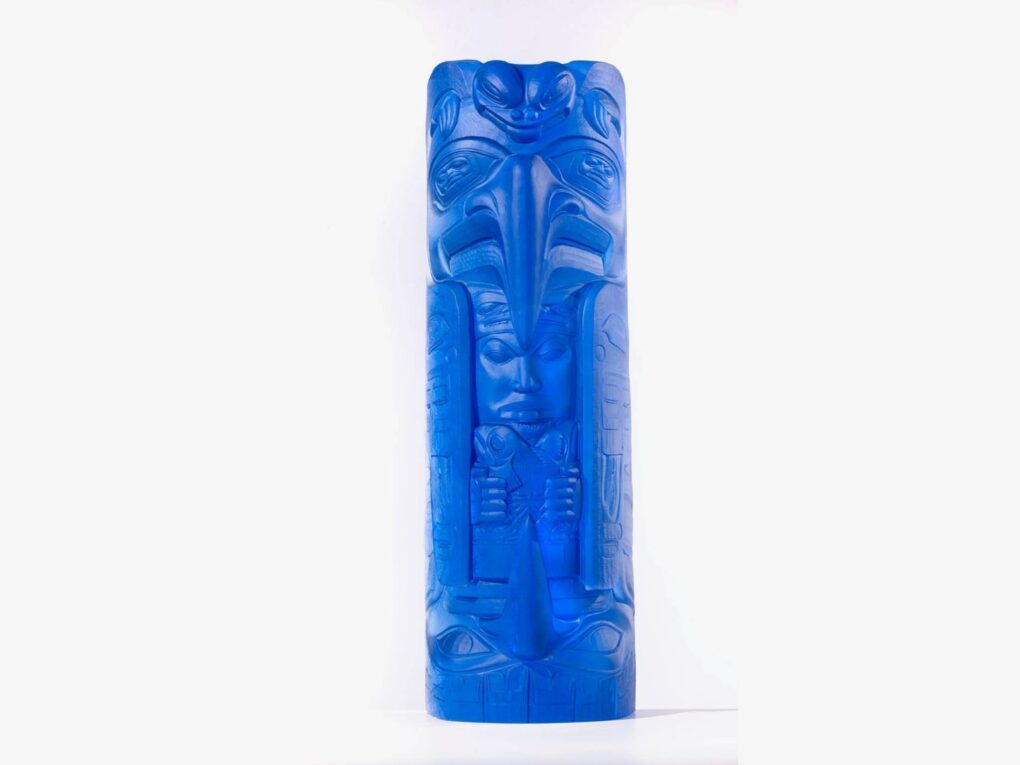 Among the stunning sculptures, made possible by The Klorfine Foundation, is a brilliant cobalt blue, three-foot tall lead crystal totem by Preston Singletary, titled Fog Woman.