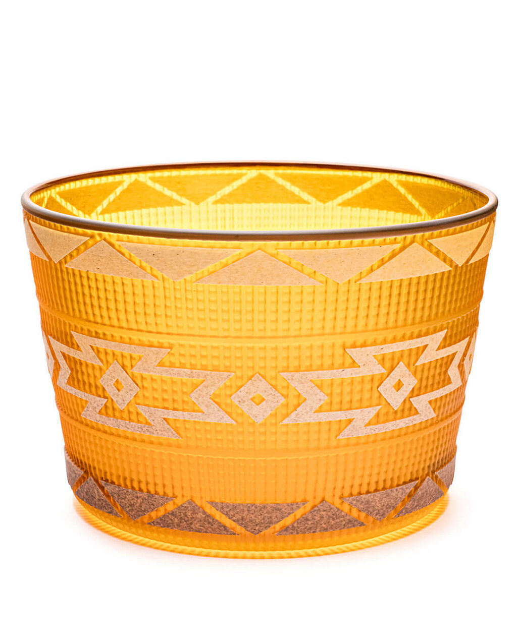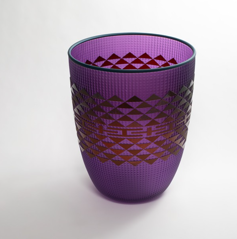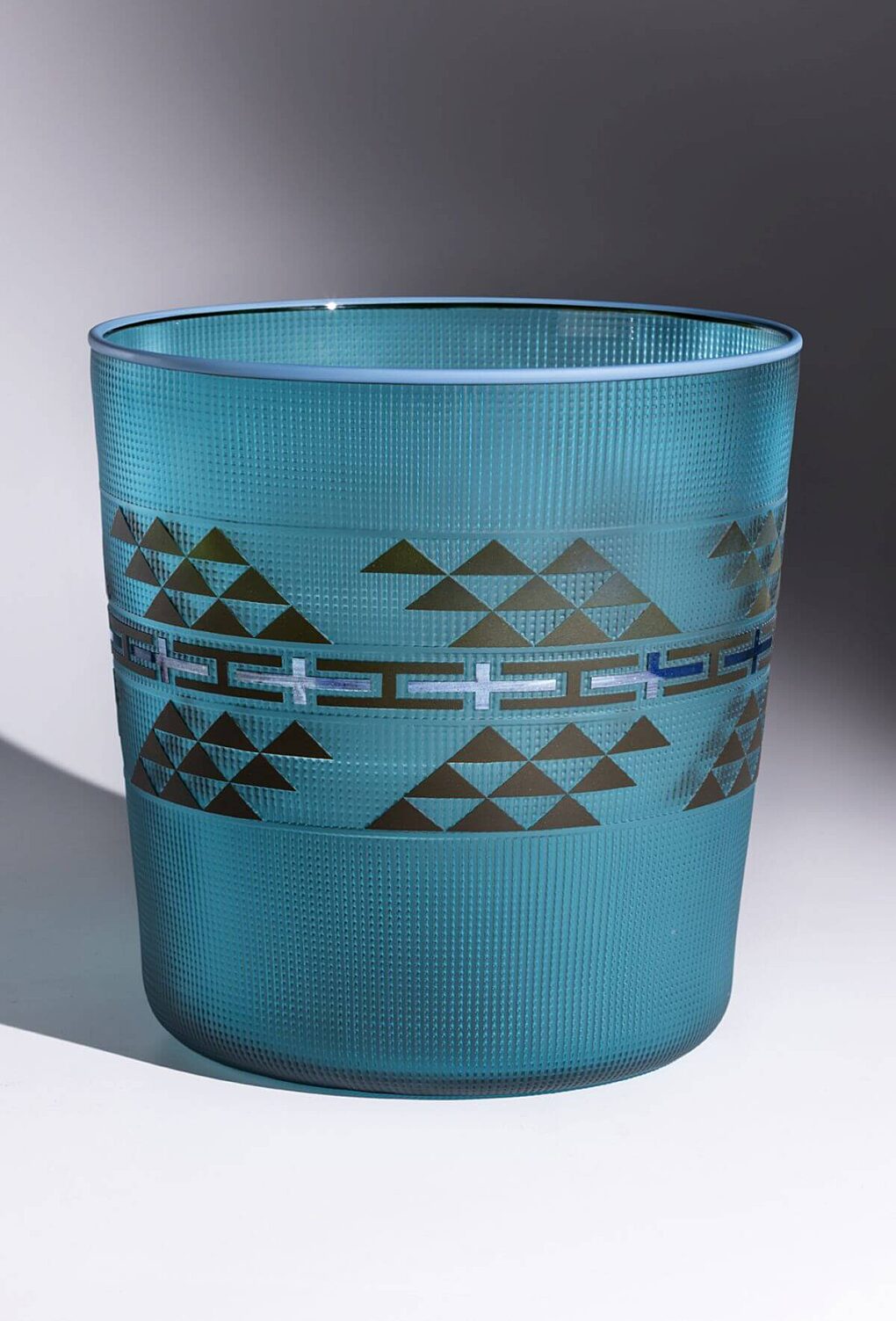 Singletary has spent decades transforming the stories and forms of his culture into striking works of contemporary glass art. Among his most captivating creations are his blown and sand carved glass Tlingit Baskets.