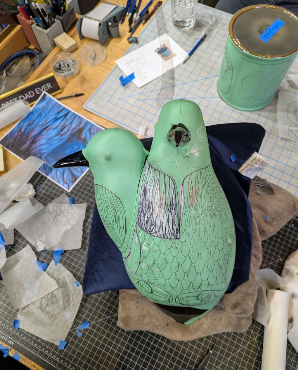 These photos provide a sneak peek at the process of making these new works. Preston was also filmed by the Traver Gallery as he narrated the story of Raven and his new adventures.