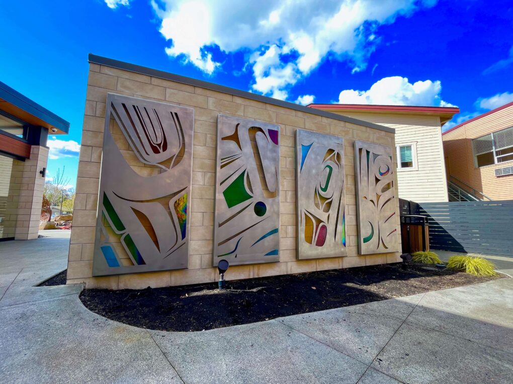 These four panels are abstract versions of my traditional artform. They are titled An Eagle’s Abstractions. I am Tlingit, a tribe from Southeast Alaska, of the Eagle moiety and Killer Whale clan.