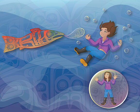 For a different project, Preston Singletary created Northwest formline designs for a book by London titled, "Journey of the Freckled Indian". This children's book shares the story of a young girl growing up in two worlds; suburban western culture, and her Native American culture.
