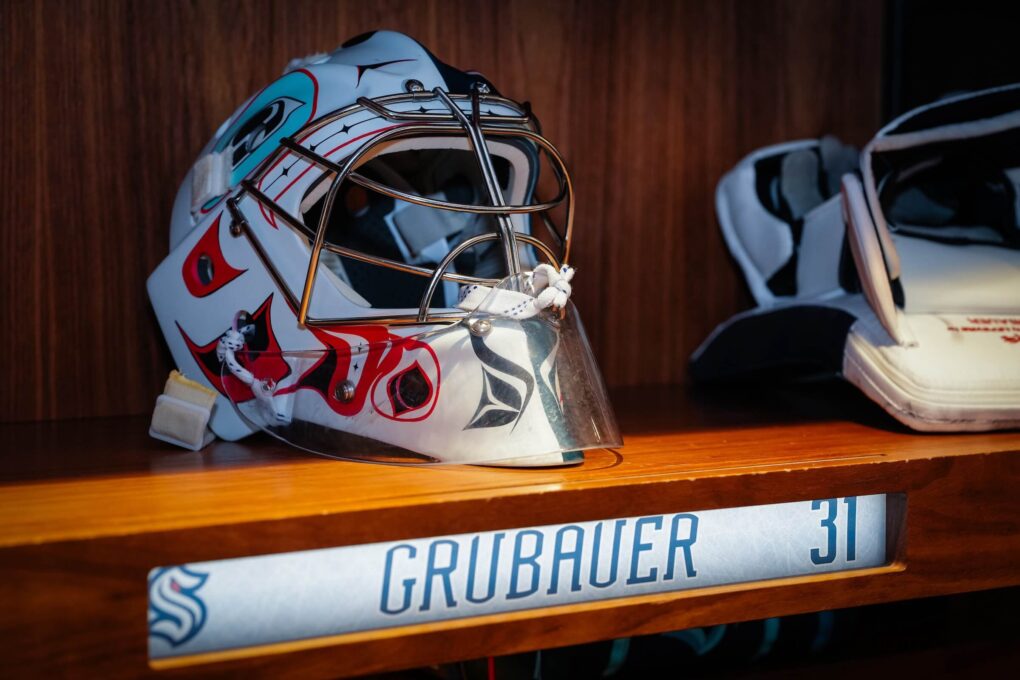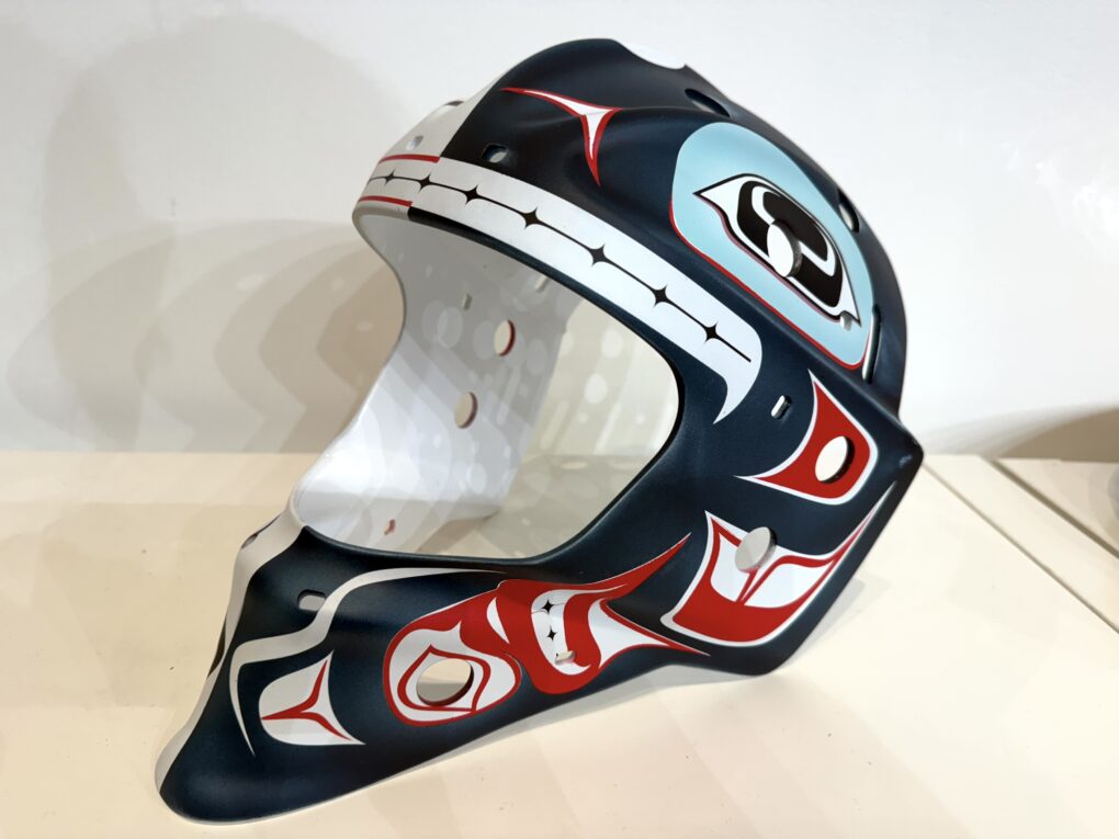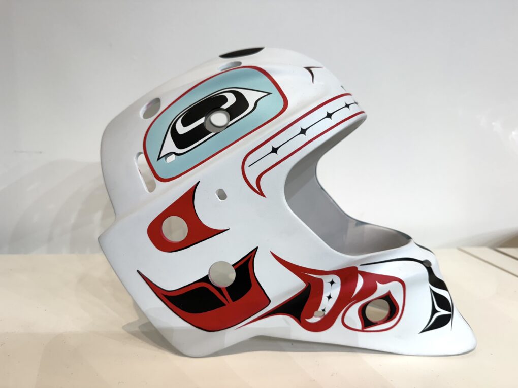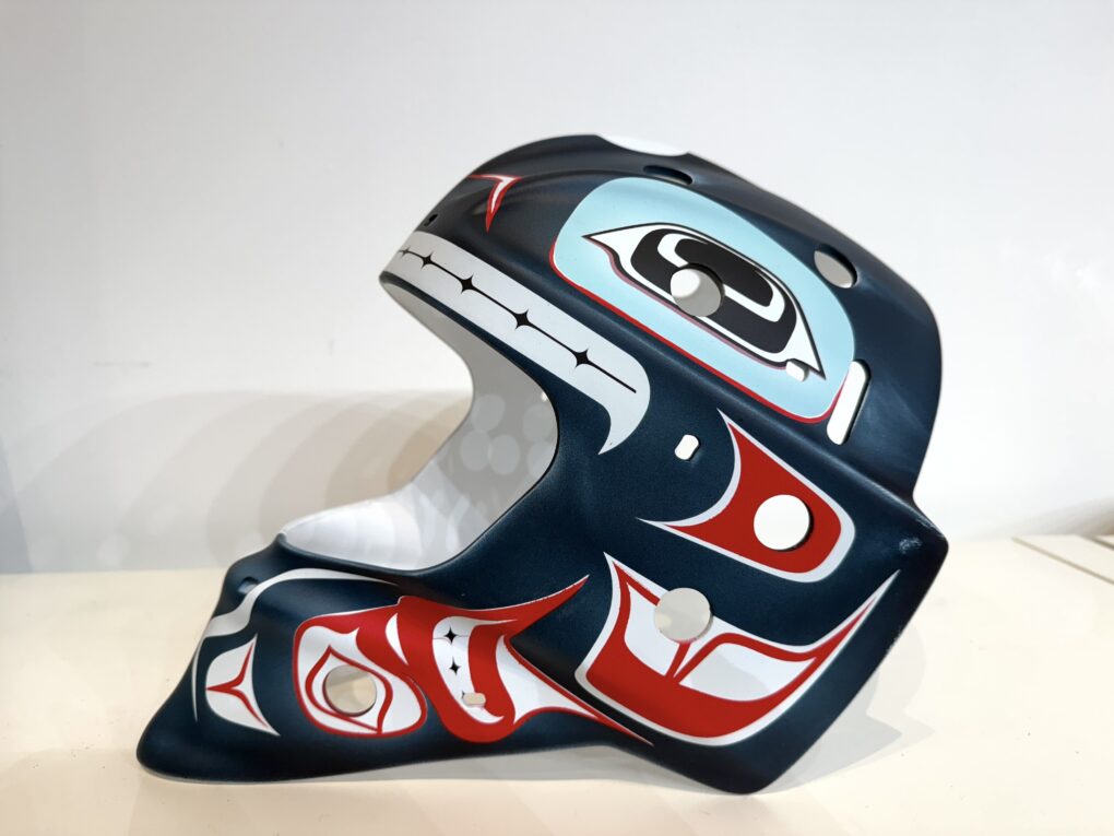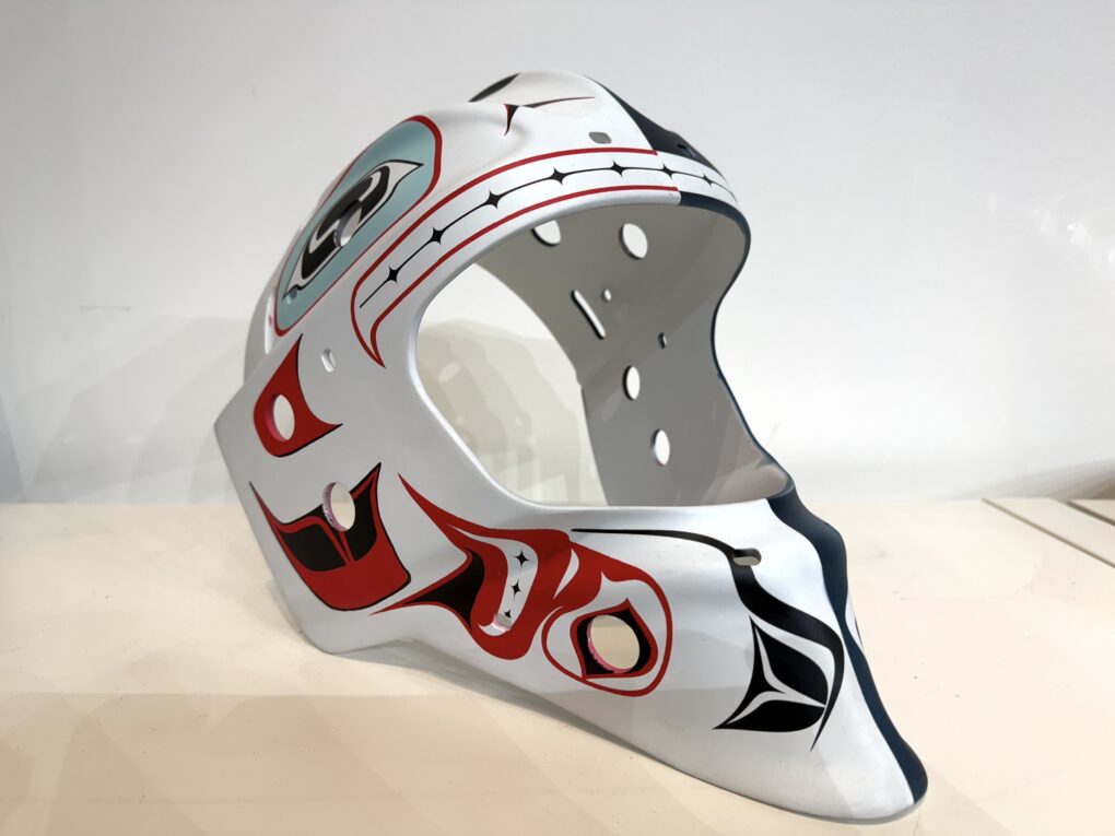 Preston Singletary was selected to design a mask for the Seattle Kraken for their Indigenous Peoples Night in December 2024. This hockey mask features a Killer Whale design and was worn by Philipp Grubauer. The mask was painted by Ty Juvinel.