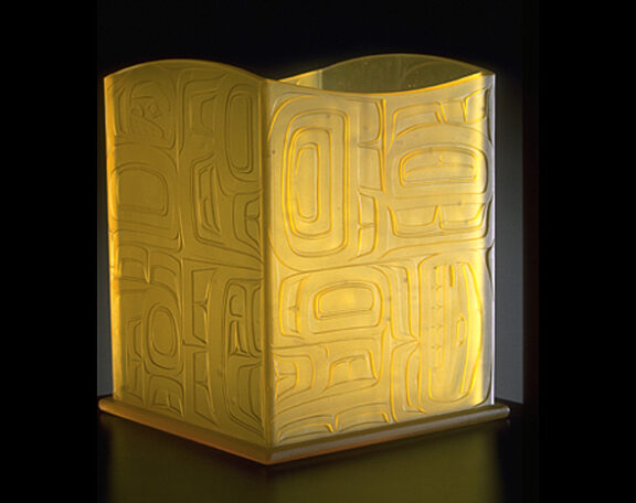 Preston Singletary is a Seattle artist who is descended from a Tlingit clan of southeastern Alaska. The Tlingit are one of several Native American tribes whose home is the Pacific Northwest Coast, which extends from southern Alaska to Oregon. Singletary's work is imbued with the sophisticated and vibrant artistic traditions of the Northwest Coast. He studies ancient designs made in traditional materials, such as cedar, shell, and bone, and he re-creates them in a modern, nontraditional medium: glass.