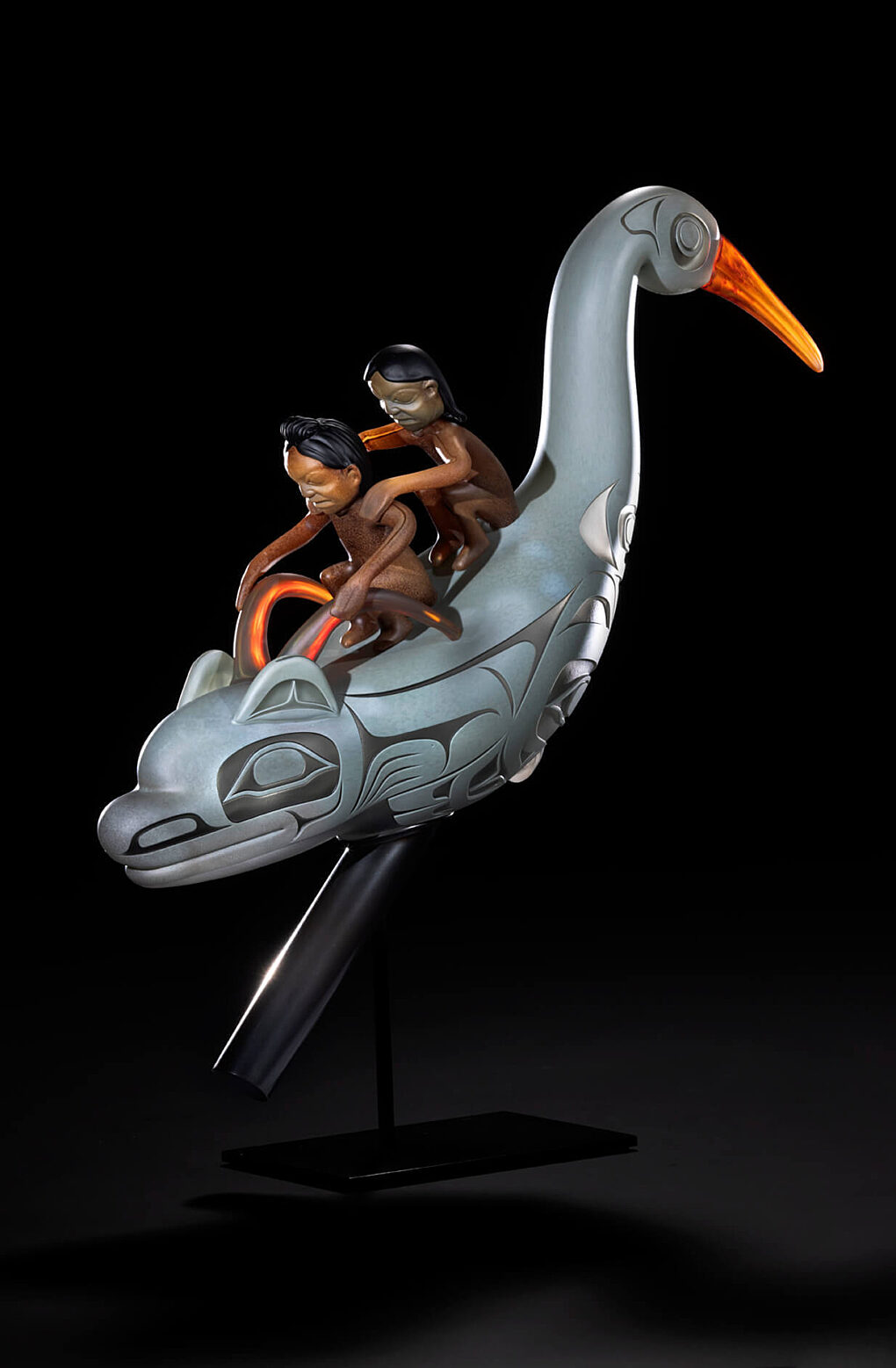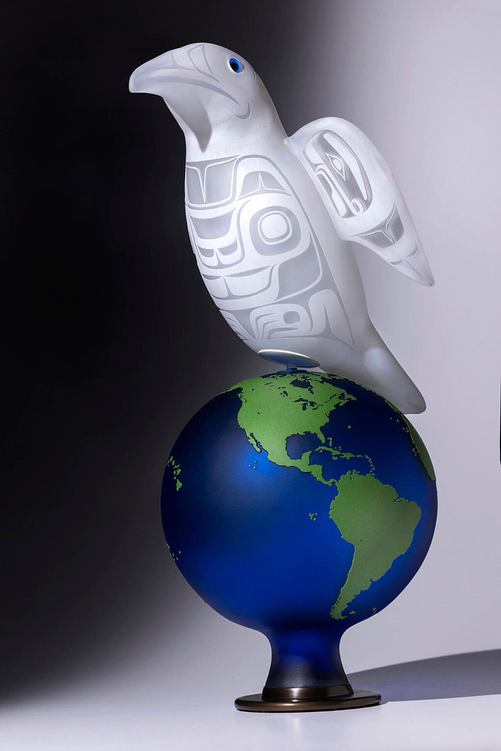 I have partnered with my friend Garth Stein who has Tlingit ancestry and who is an internationally best-selling novelist. I asked him to create a narrative around this concept. It resulted in what I have come to think of as a new direction in my own work, imagining the stories of what Raven is up to these days." - Preston Singletary
