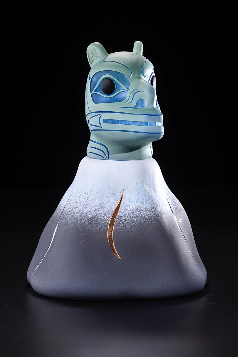 Singletary’s sculptural interpretations capture these themes with bold colors, unexpected forms, and his signature approach to glass. Each piece reflects the trickster’s transformative power—shifting between humor and wisdom, order and chaos, past and future.